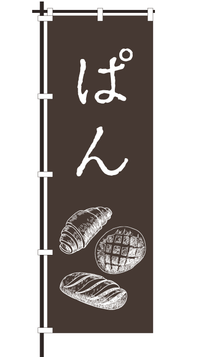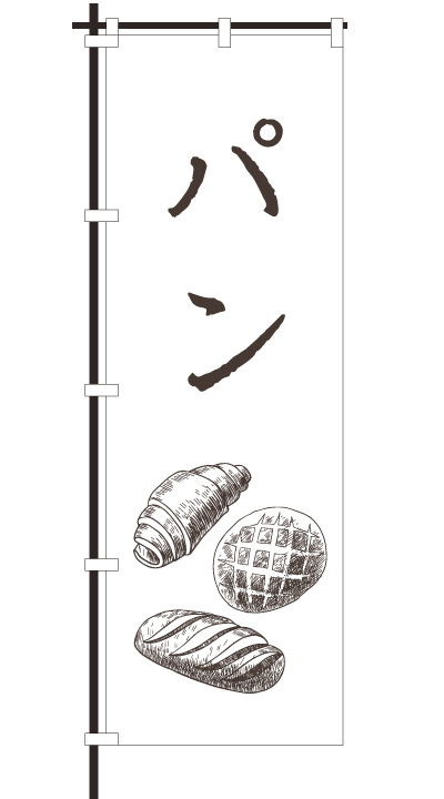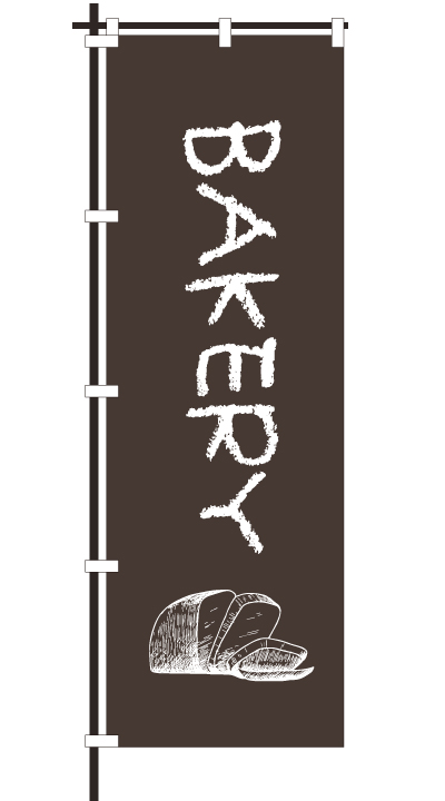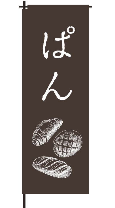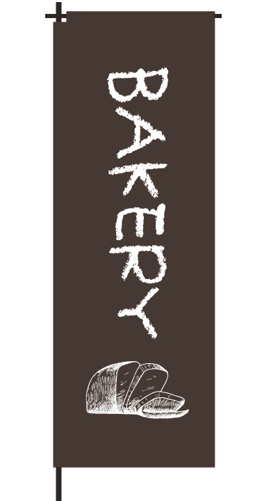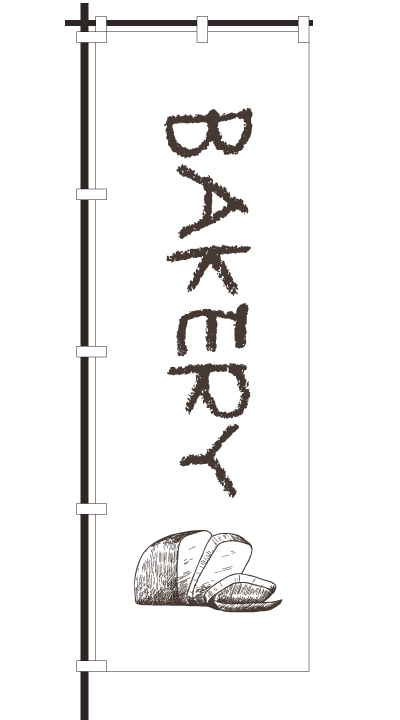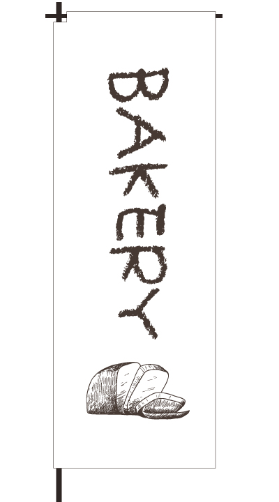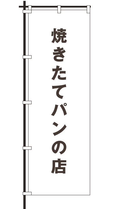 「 焼きたてパンの店 」ベース色:白文字色:茶形状:袋縫い