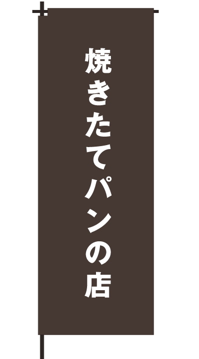 「 焼きたてパンの店 」ベース色:白文字色:茶形状:チチ