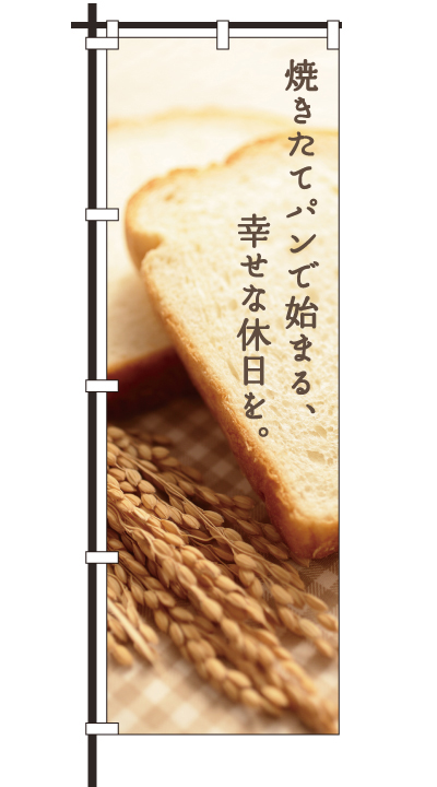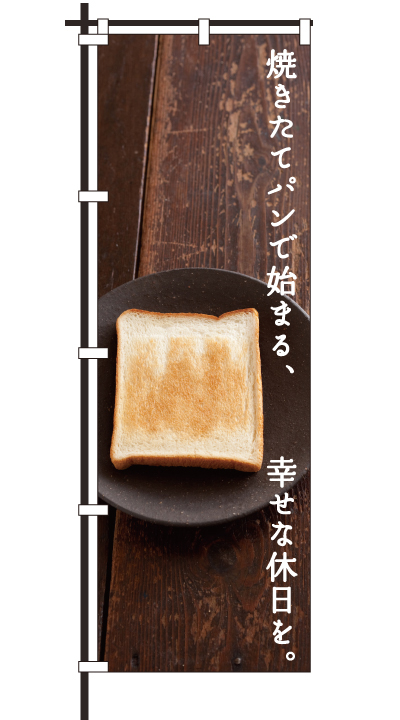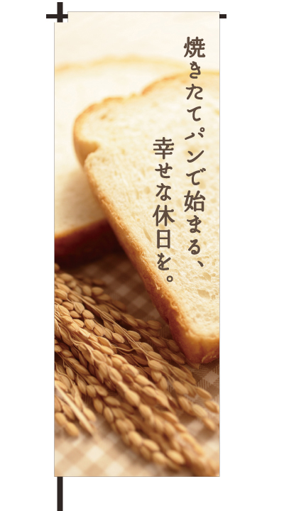 「 焼きたてパンで始まる、幸せな休日を。 」ベース:画像形状:袋縫い