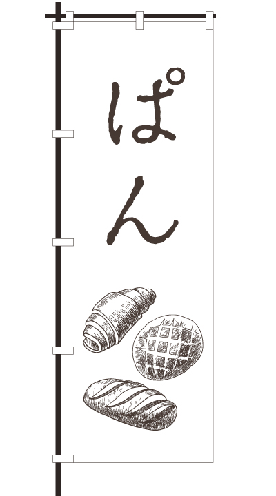 「 ぱん 」ベース色:白文字色:茶形状:袋縫い
