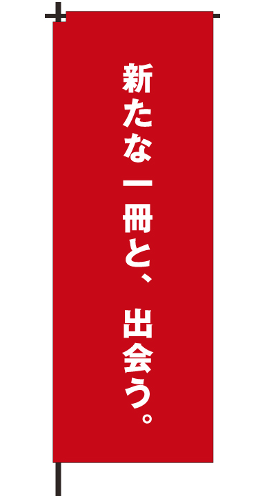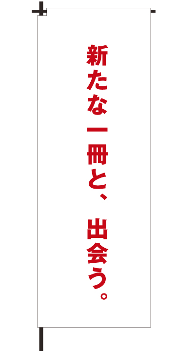 「 新たな一冊と、出会う。 」ベース色:白文字色:赤形状:チチ