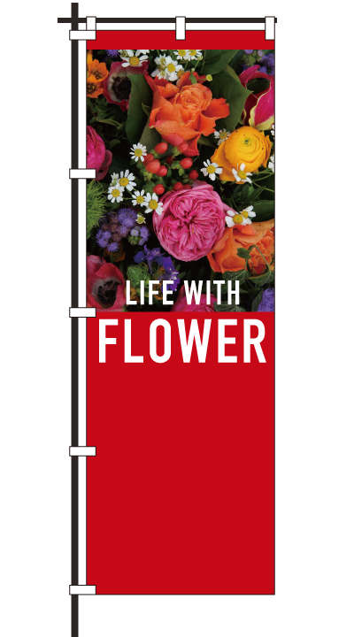 「 LIFE WITH FLOWER 」ベース色:赤形状:袋縫い