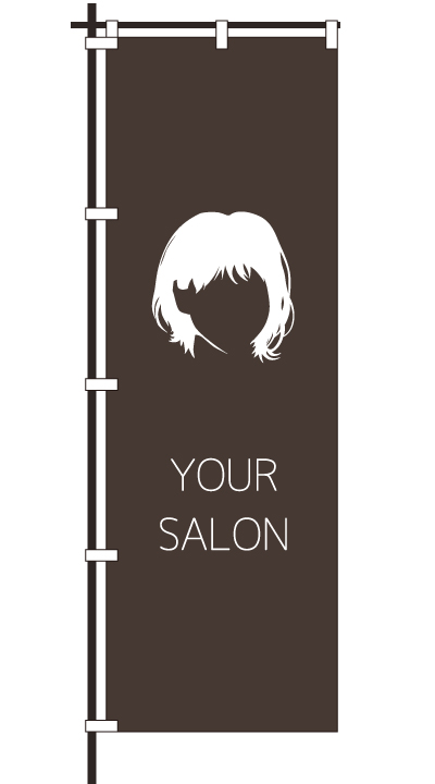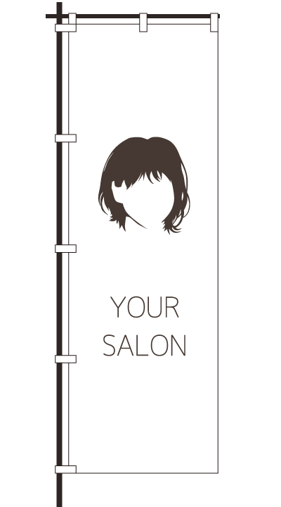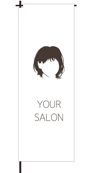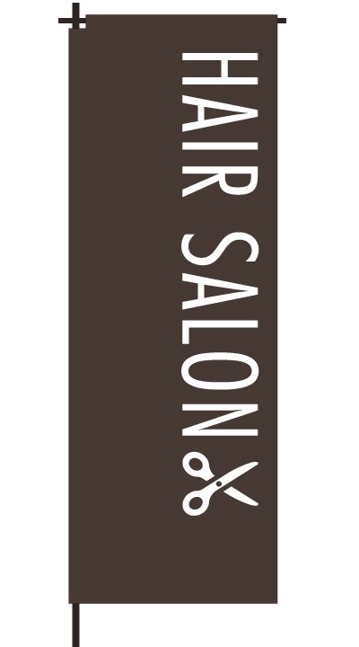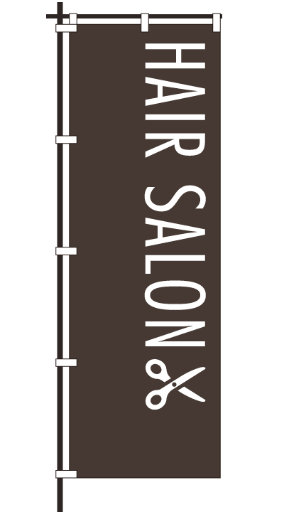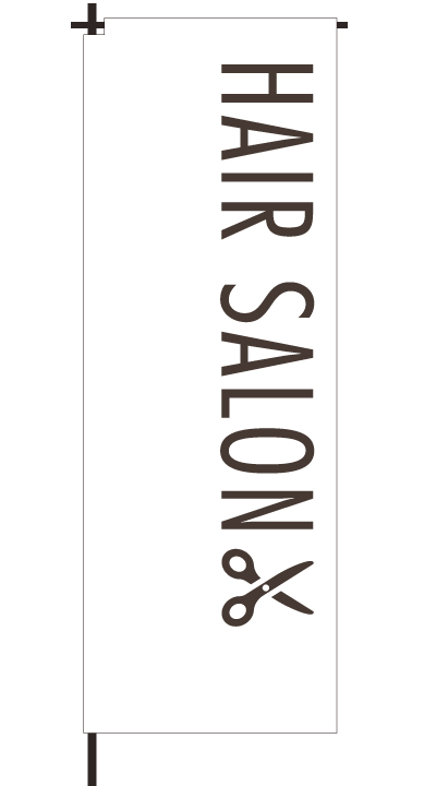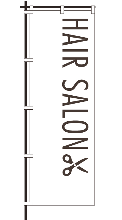 「 HAIR SALON 」ベース色:白文字色:茶形状:袋縫い