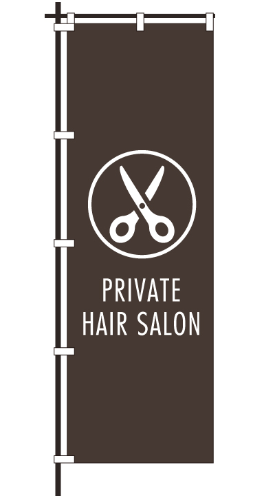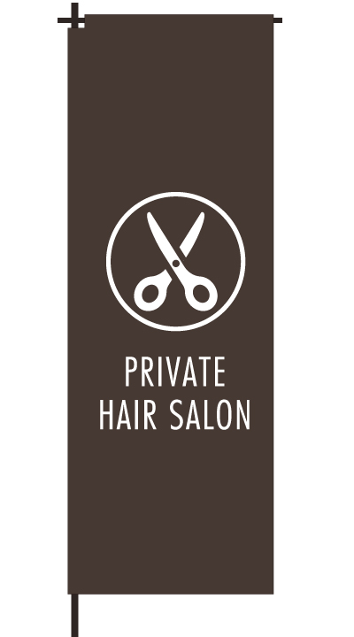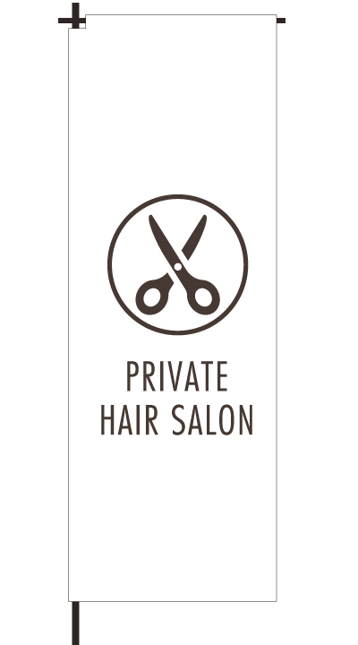 「 PRIVATE HAIR SALON 」ベース色:白文字色:茶形状:チチ