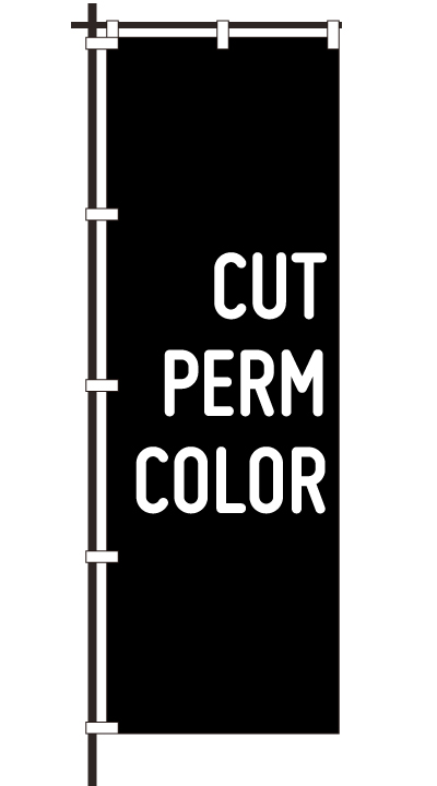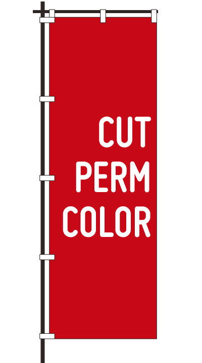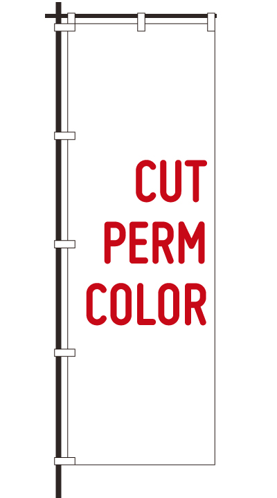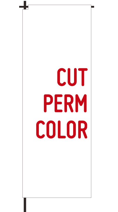 「 CUT PERM COLOR 」ベース色:白文字色:赤形状:袋縫い