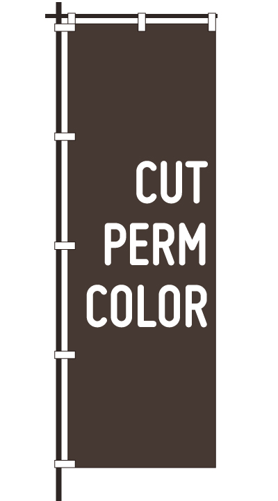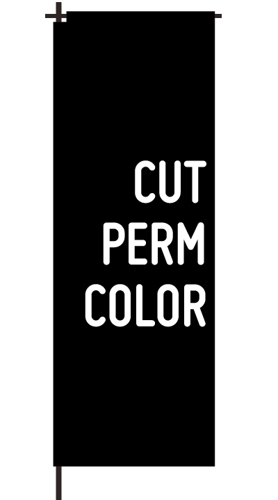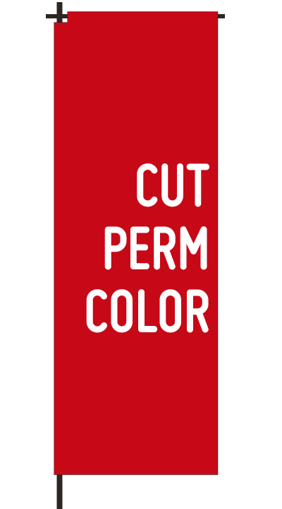 「 CUT PERM COLOR 」ベース色:白文字色:赤形状:チチ