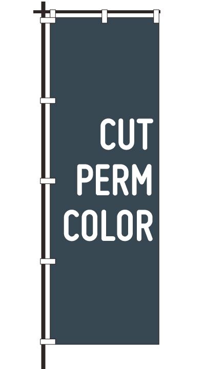「 CUT PERM COLOR 」ベース色:紺形状:袋縫い