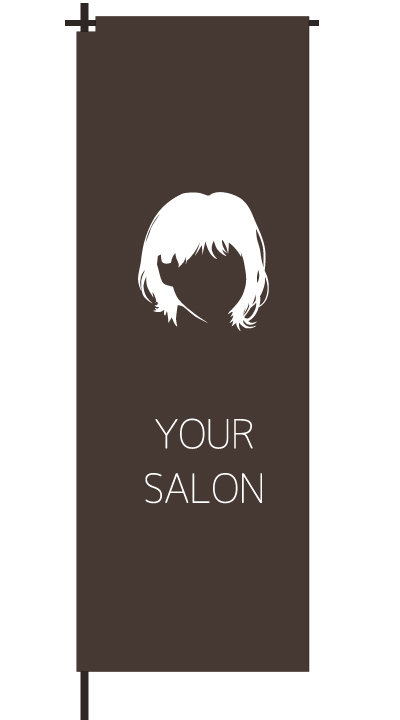 「 HAIR SALON 」ベース色:白文字色:茶形状:チチ
