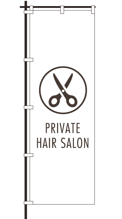 「 PRIVATE HAIR SALON 」ベース色:白文字色:茶形状:袋縫い