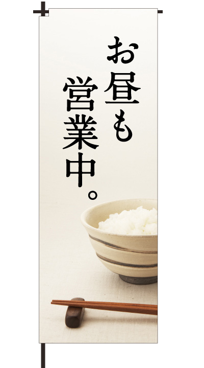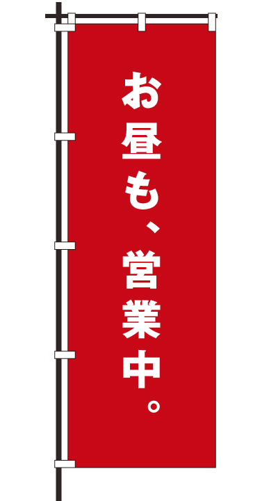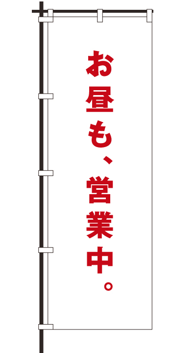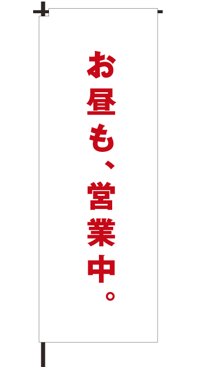 「 お昼も、営業中。 」ベース色:白文字色:赤形状:袋縫い