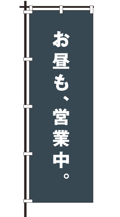 「 お昼も、営業中。 」ベース色:紺形状:袋縫い