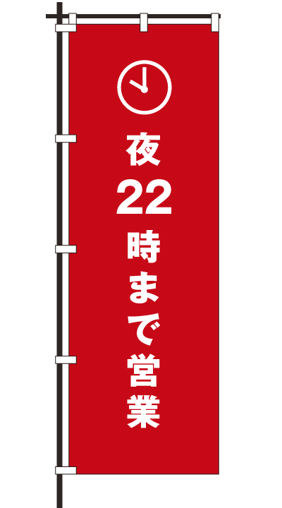 「 夜22時まで営業 」ベース色:赤形状:袋縫い