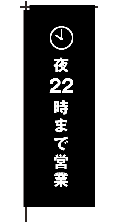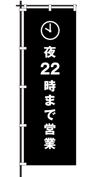 「 夜22時まで営業 」ベース色:黒形状:袋縫い