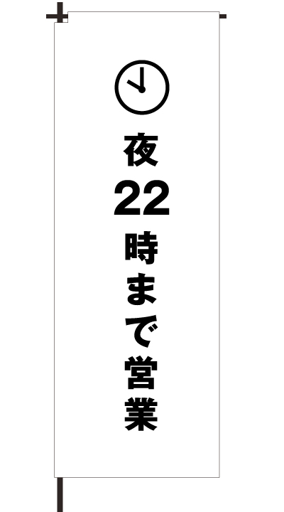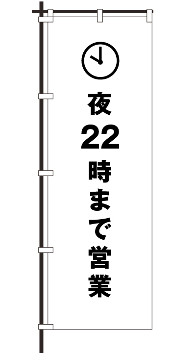 「 夜22時まで営業 」ベース色:白文字色:黒形状:袋縫い