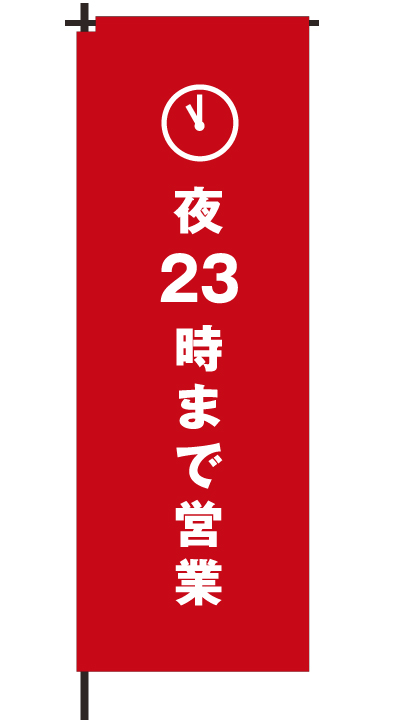 「 夜23時まで営業 」ベース色:赤形状:袋縫い