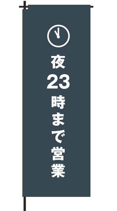 「 夜23時まで営業 」ベース色:紺形状:チチ
