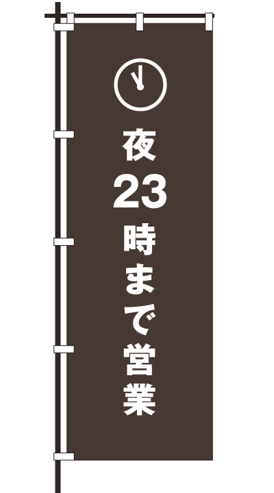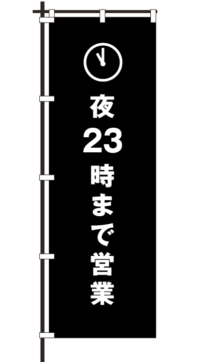 「 夜23時まで営業 」ベース色:黒形状:袋縫い