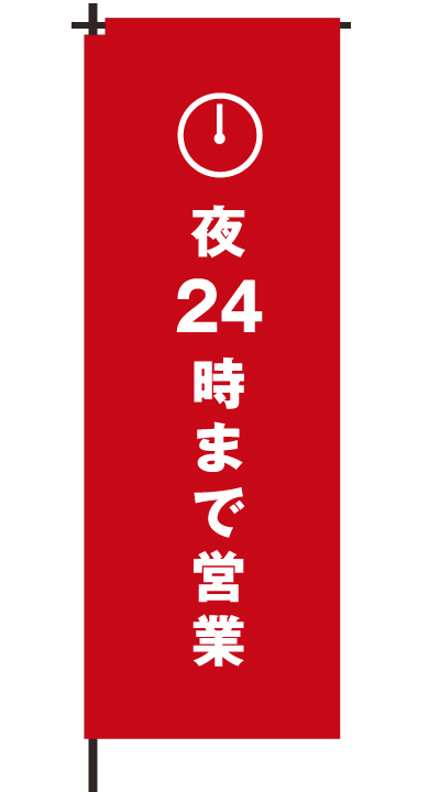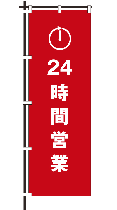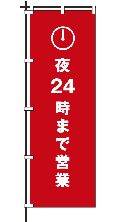 「 夜24時まで営業 」ベース色:赤形状:袋縫い