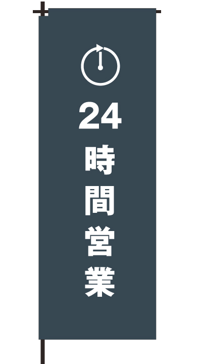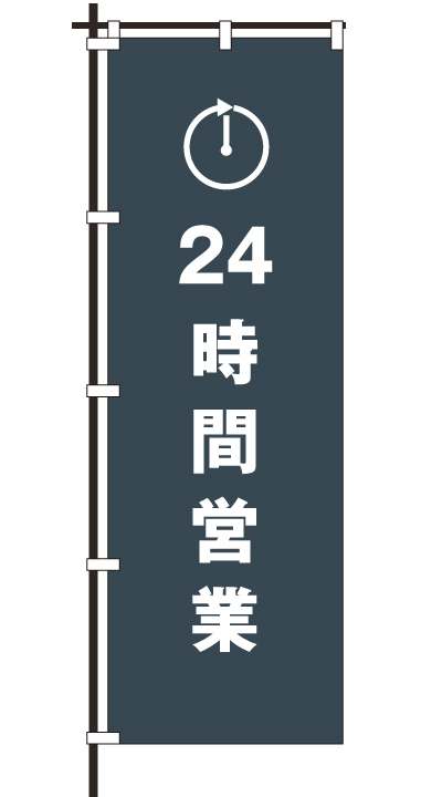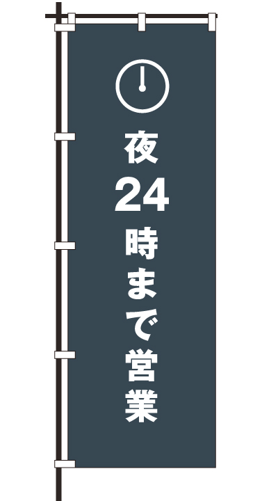 「 夜24時まで営業 」ベース色:紺形状:チチ
