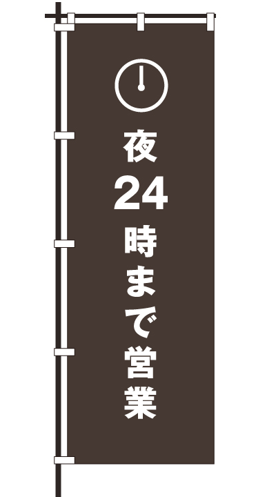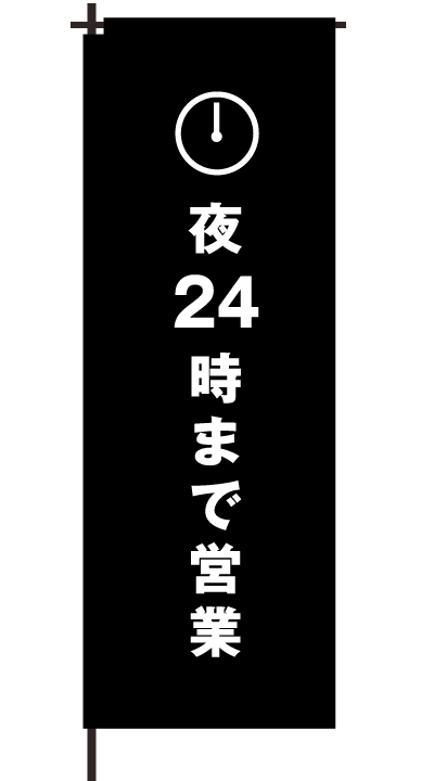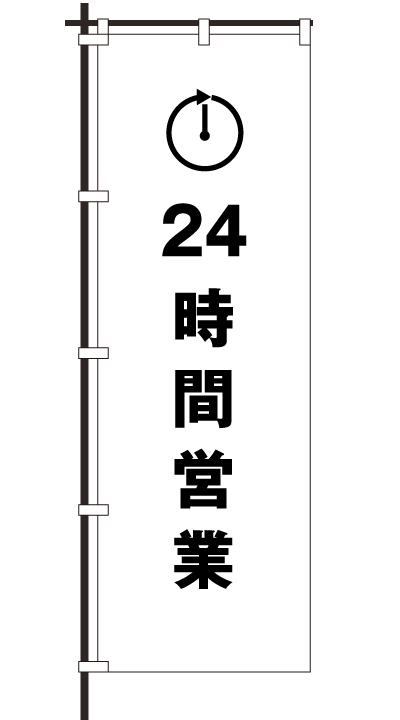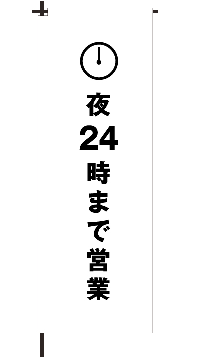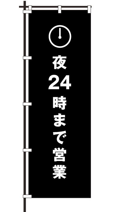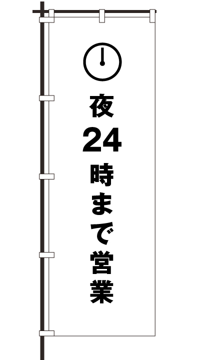 「 夜24時まで営業 」ベース色:白文字色:黒形状:袋縫い