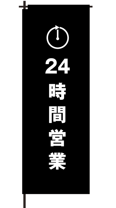 「 夜24時まで営業 」ベース色:黒形状:袋縫い