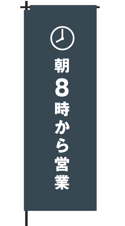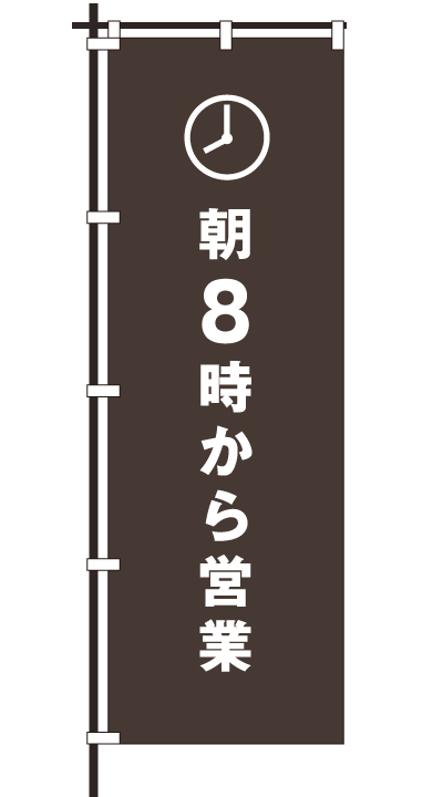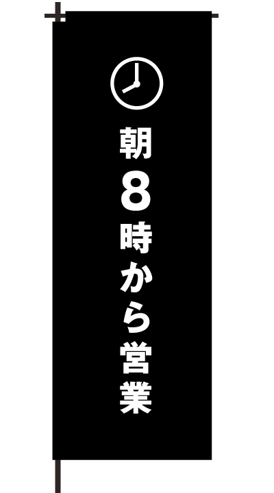 「 朝8時から営業 」ベース色:白文字色:黒形状:チチ