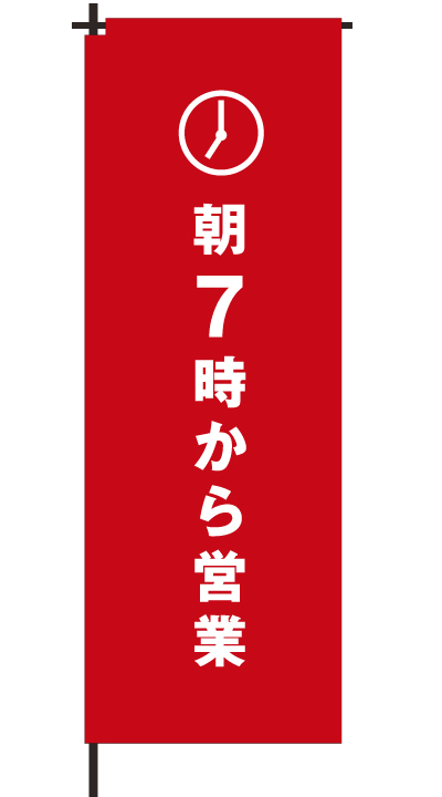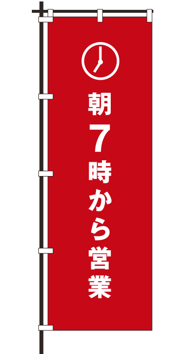 「 朝7時から営業 」ベース色:赤形状:袋縫い