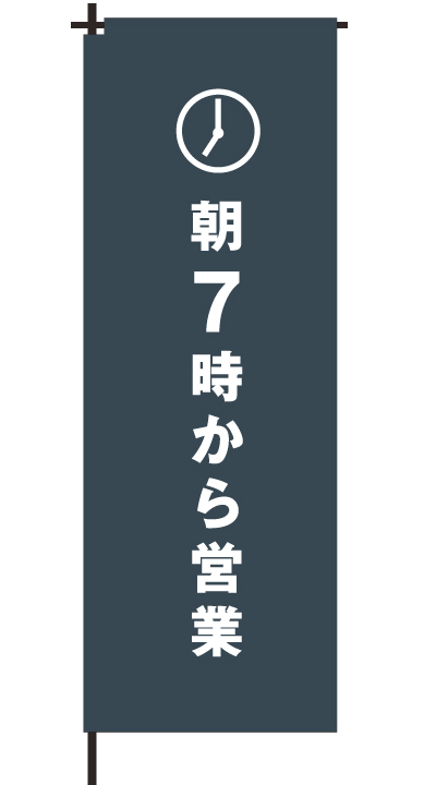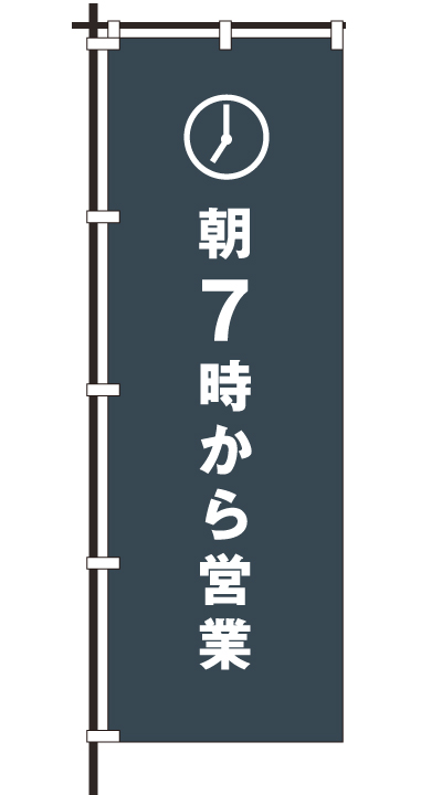 「 朝7時から営業 」ベース色:紺形状:チチ