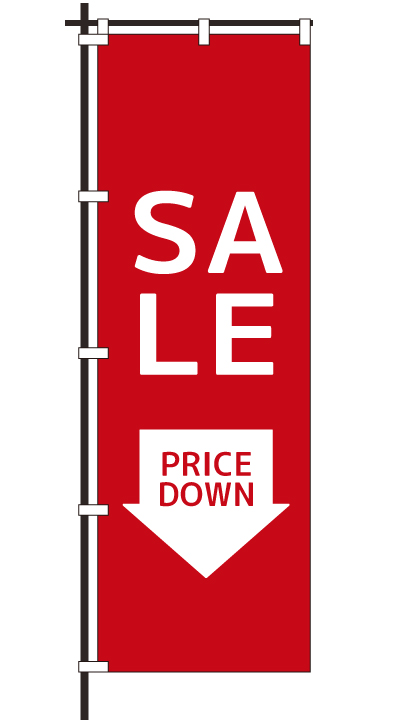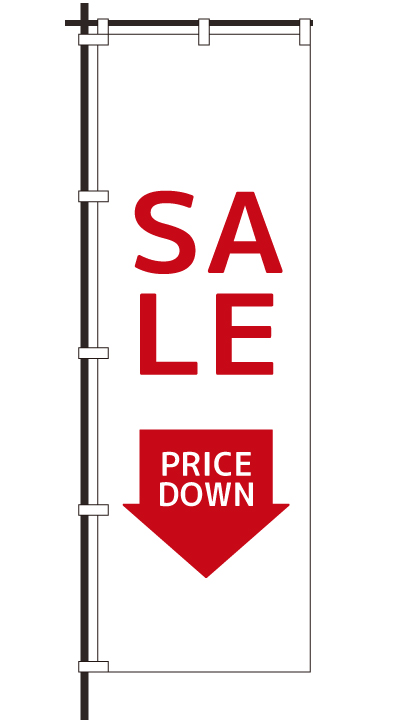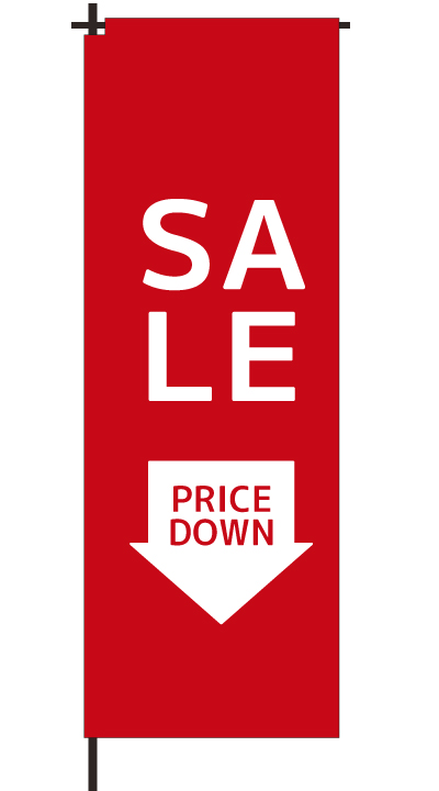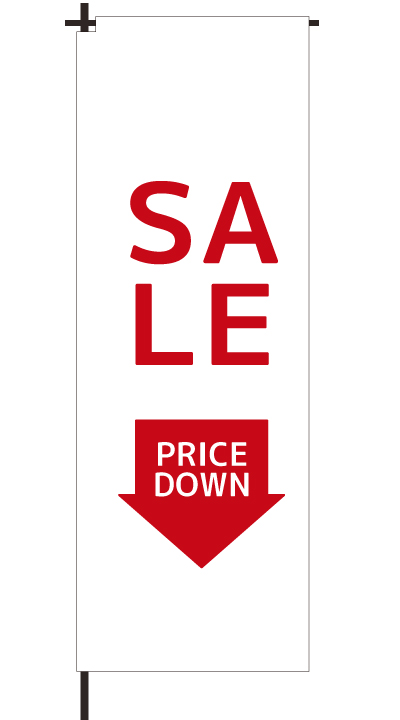 「 SALE PRICEDOWN 」ベース色:白文字色:赤形状:袋縫い