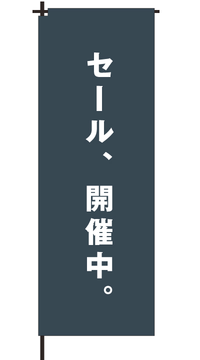 「 セール、開催中。 」ベース色:紺形状:袋縫い