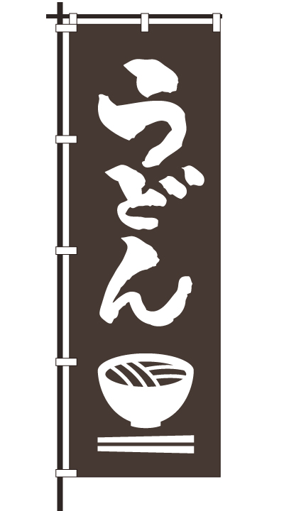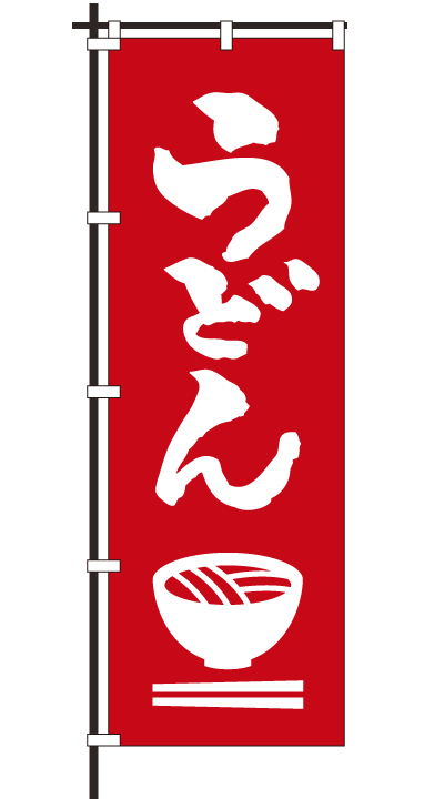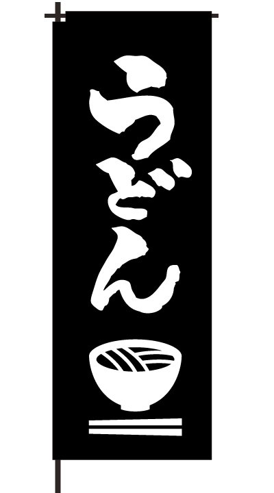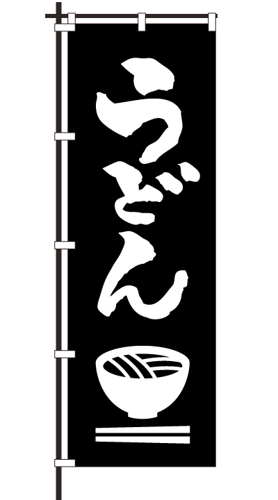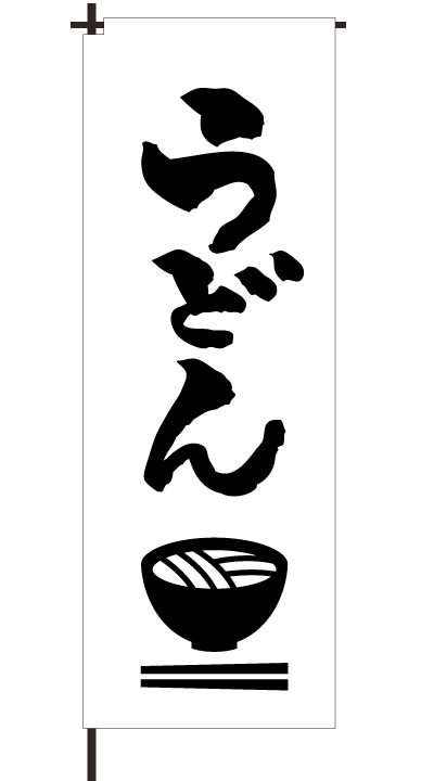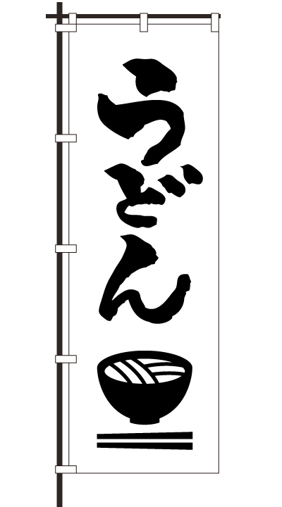 「 うどん 」ベース色:白文字色:黒形状:袋縫い
